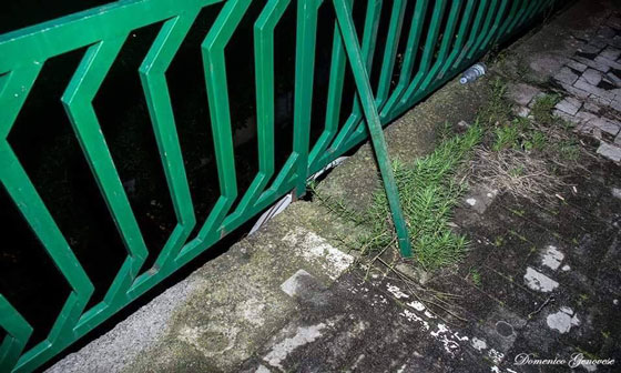 “Ringhiera sconnessa nella piazzetta in Via Mercurio – come mostrato nelle fotografie che seguono – nella piazzetta in Via Mercurio è presente una ringhiera in metallo, parzialmente sconnessa dalla sua base in cemento, fatto che la rende fonte di grave pericolo. La sconnessione è infatti tale da creare una fenditura tra la ringhiera e il cemento, entro la quale è possibile cadere, specialmente per i bambini, con il rischio quindi di finire nel dirupo sottostante.
