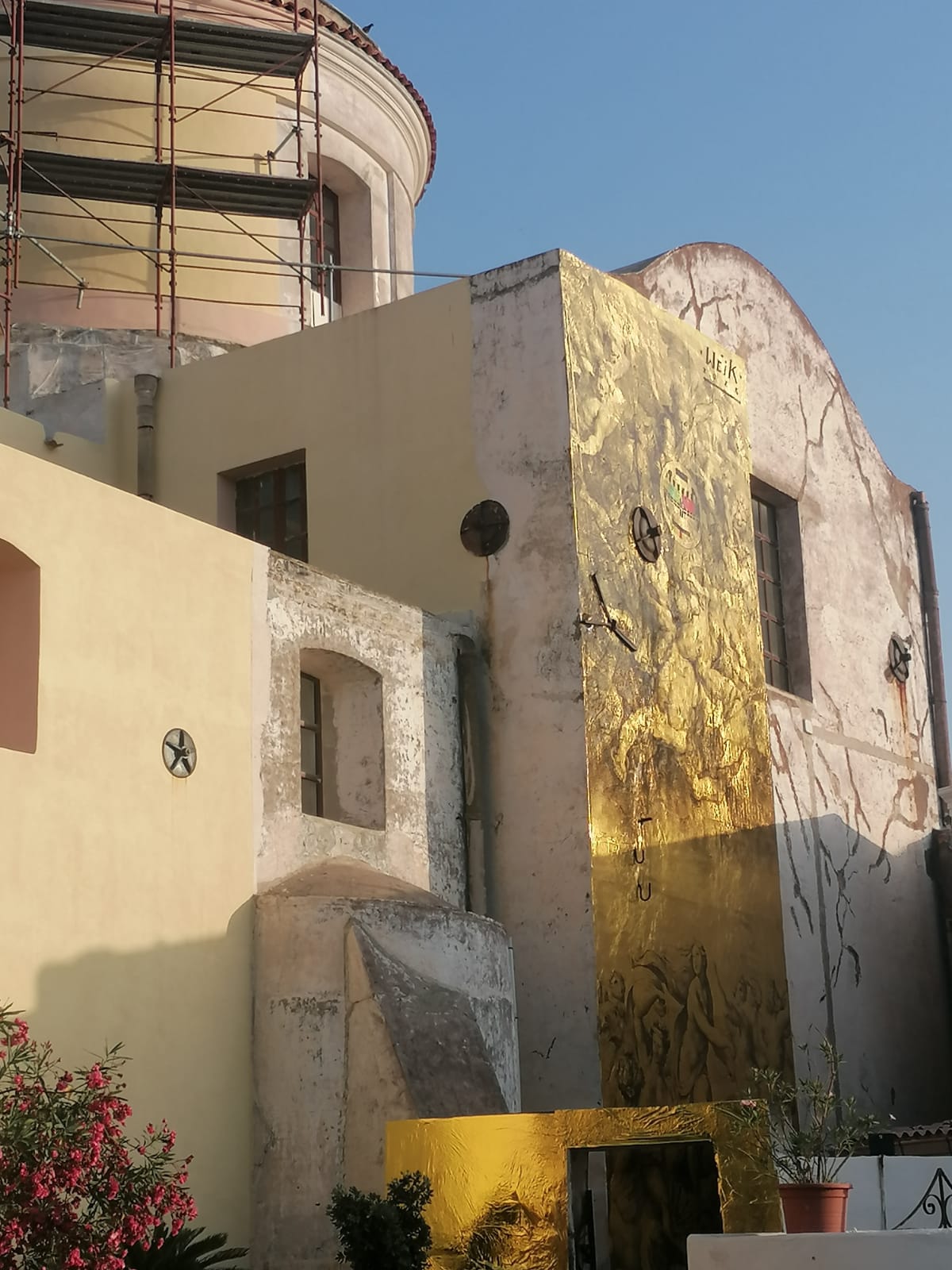 Il multidisciplinare artista Graffiti Writer, Fabio Weik (alla direzione curatoriale per  l’arte contemporanea della sezione Fuori Premio 2023), è l’autore dell’opera site-specific, coperte isotermiche sulla parete della Chiesa di San Vincenzo, “La salvezza degli angeli ribelli” che “rappresenta il processo di adattamento che l’uomo vive nei confronti della demonizzazione causata dall’informazione mediatica. Siamo ormai abituati a credere alle notizie che leggiamo e sentiamo senza differenza alcuna. Chi viene posto al centro del processo mediatico viene spesso additato da coloro che apprendono l’informazione, a prescindere dalla verità. Ciò rappresenta come l’uomo si sia adattato alla comunicazione di massa, prendendola per vera a prescindere dalla fonte.