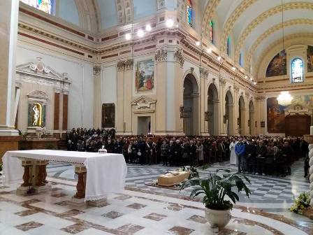 I Funerali Solenni sono stati celebrati dall’Arcivescovo Sua Ecc.za Mons. Giovanni Accolla alla presenza di tantissimi Sacerdoti del Vicariato e delle Autorità, presenti in prima fila fra gli altri il Sindaco Roberto Materia e il Comandante della Polizia Municipale. La città, la gente del popolo che tanto amava Padre Angelo, ha risposto con una presenza massiccia e silenziosa, sia durante le Esequie sia da domenica sera, quando la Salma di Padre Angelo era giunta in Basilica proveniente dalla Casa “Santa Maria del Riposo” ove il Sacerdote aveva trascorso l’ultimo periodo della propria vita terrena per una scelta personale che è stata ribadita dalla famiglia.