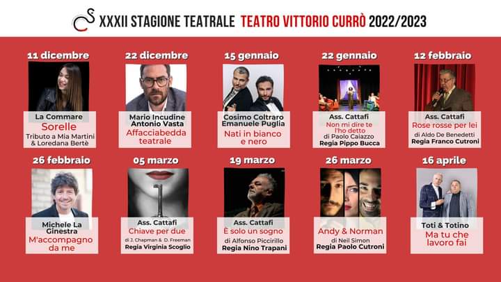 Ad annunciare la “ripresa dei lavori” il Consiglio Direttivo dell’Associazione, nella persona del Presidente Ada Dipaola, la quale si dichiara “davvero entusiasta ed emozionata di poter ospitare, sul palcoscenico del Teatro “Vittorio Curró”, artisti provenienti da tutta Italia, che offriranno al pubblico performance di grande spessore culturale”.