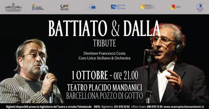 Sabato 1 ottobre 2022 alle ore 21.00 al Teatro Mandanici di Barcellona Pozzo di Gotto il Coro Lirico Siciliano (dir. Francesco Costa), l’Orchestra Filarmonica della Calabria e l’ensemble orchestrale in residence del Festival Lirico dei Teatri di Pietra, terranno il ‘Battiato & Dalla Tribute’, una frizzante inaugurazione per la Stagione invernale del principale Teatro della Città del Longano.