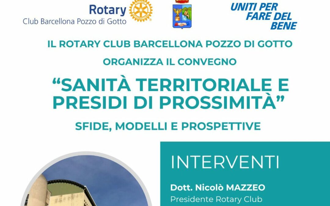 E’ in programma venerdì 23 gennaio presso il salone comunale del Parco Maggiore La Rosa alle ore 18:30 il Convegno informativo “SANITA’ TERRITORIALE E PRESIDI DI PROSSIMITA” organizzato dal Rotary Club di Barcellona P.G.