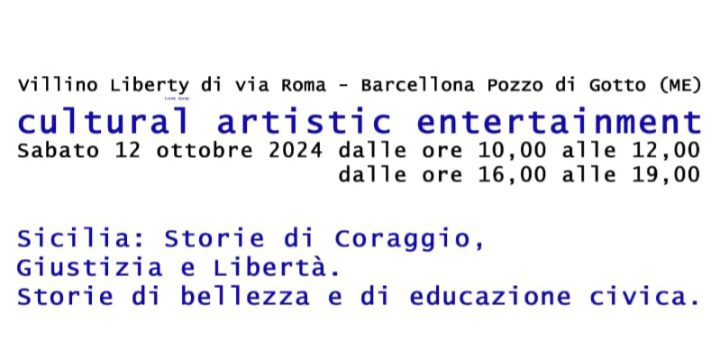 Il Luogo del Contemporaneo del Ministero della Cultura GALLERIA PROgetto CITTA’ per celebrare la ventesima giornata del contemporaneo propone “cultural artistic entertainment” ideato, proposto e curato dall’architetto Rosario Andrea Cristelli, un momento dialettico di confronto su temi didattici legati all’educazioni civica, fondamentale in un momento storico in cui si stanno perdendo di vista le componenti fondamentali della civitas attraverso un’esposizione artistica che sarà aperta al pubblico gratuitamente dalle ore 10,00 alle 12,00 e dalle ore 16,00 alle 19,00 di sabato 12 ottobre 2024 presso il Villino Liberty di via Roma a Barcellona Pozzo di Gotto (ME).