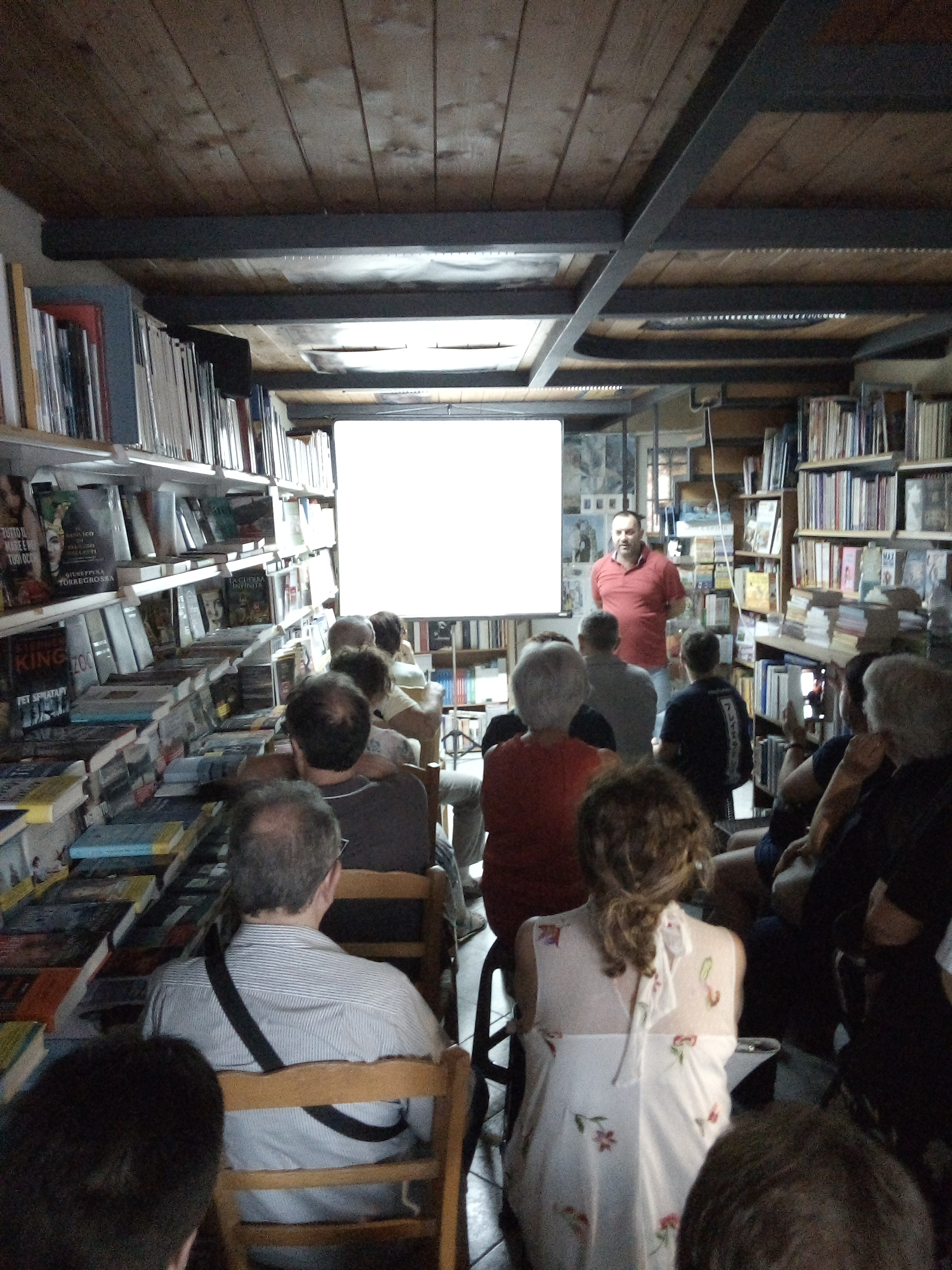 L’evento, come ha spiegato nella sua introduzione l’organizzatore Giovanni Mazzeo della Gutenberg, è nato quasi casualmente, potremmo dire “last minute”. Il Brigandì, attualmente nella nostra città, (scopriremo che vive a Milano), avrebbe voluto fare questo incontro nella sede più appropriata, la Biblioteca Comunale, ma per motivi burocratici non è stato possibile. Maria Sottile lo ha intercettato al Villino Liberty ed ha immediatamente compreso di trovarsi di fronte una figura di grande spessore umano e culturale per cui lo ha immediatamente proposto all’amico Giovanni ed è nato questo appuntamento in libreria.