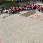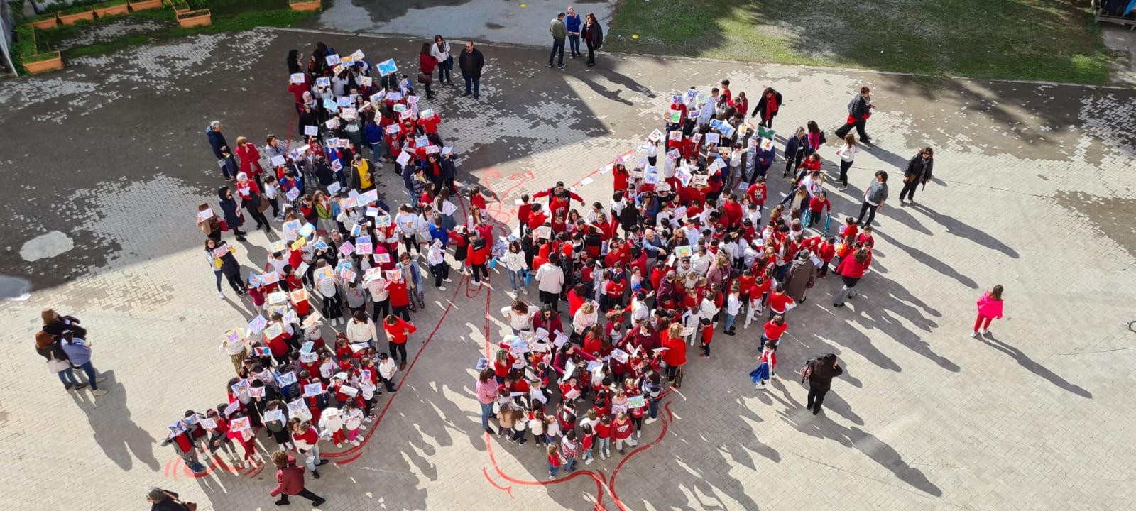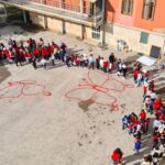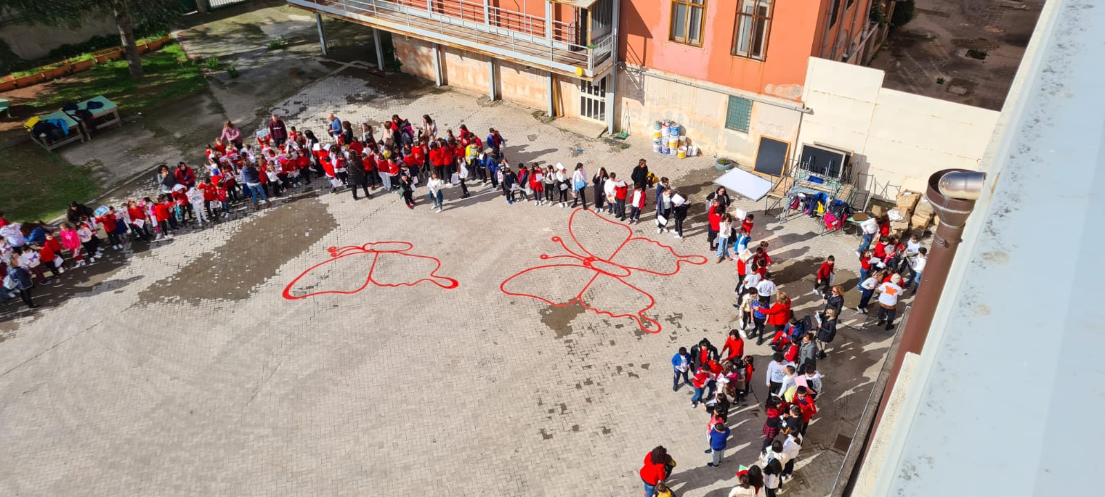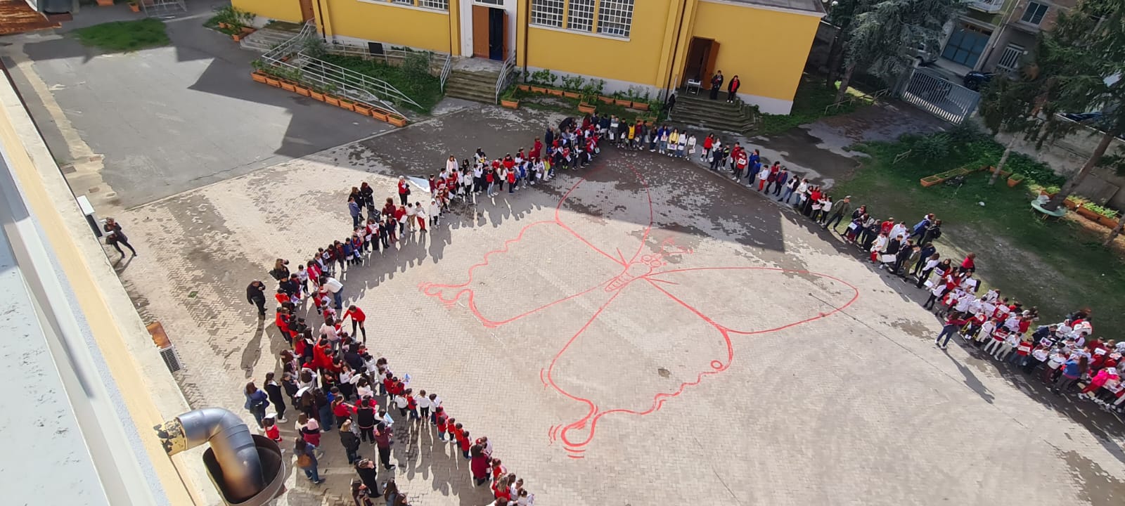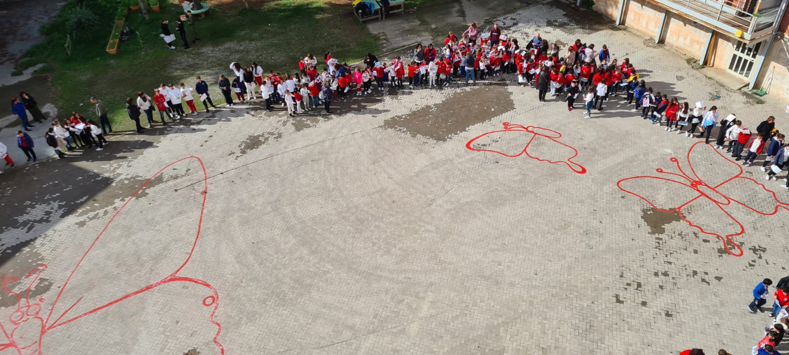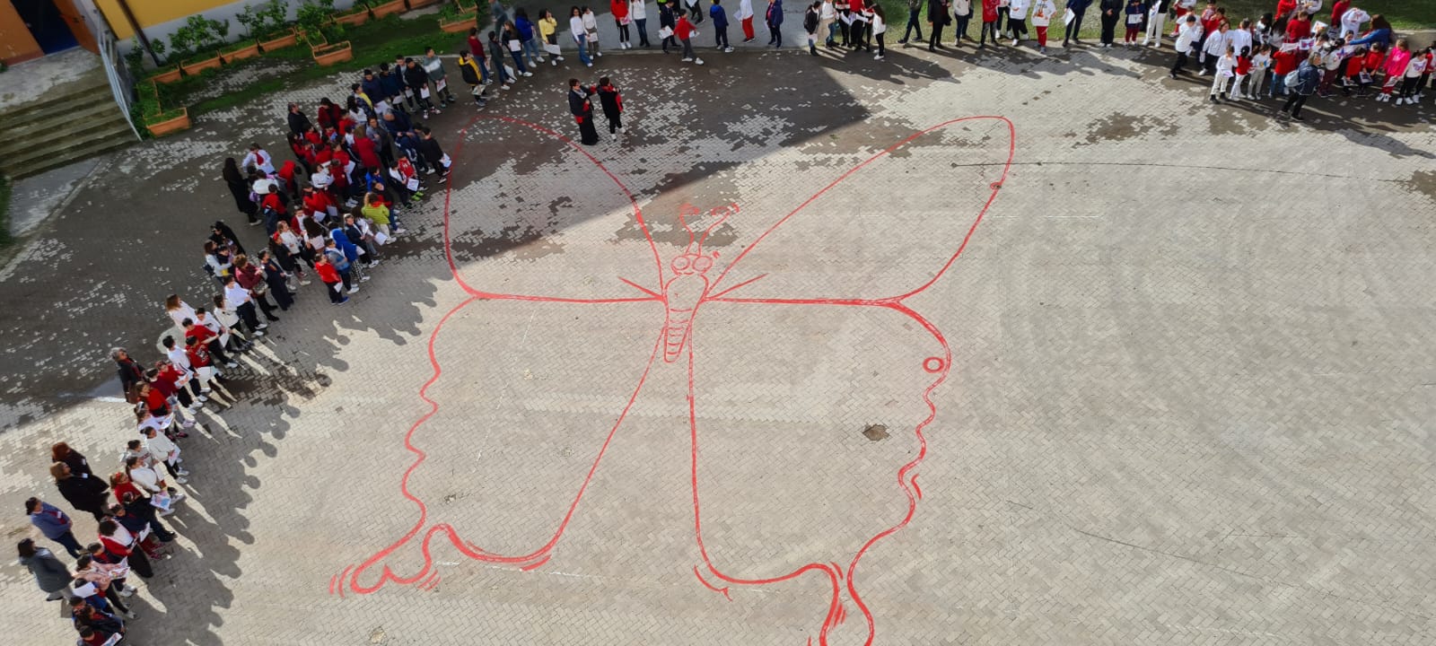 Le alunne e gli alunni hanno così preso parte al Flash Mob definendo fisicamente le TRE FARFALLE occupando un posto: tutti insieme per l’eliminazione della violenza.