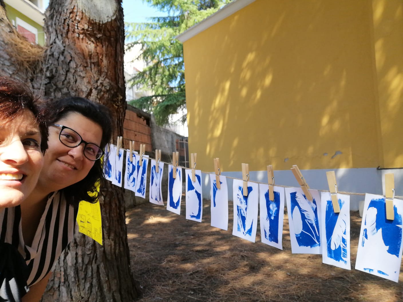 Il “laboratorio all’aperto, en plein air, all’ombra di pini secolari nello spazio verde della Scuola Verga attiguo alla palestra, ha fatto vivere una mattinata di sperimentazione dedicato alla particolare tecnica della cianotipia: la magia del colore, dal verde al blu. Così le alunne e gli alunni hanno potuto creare personali elaborati artistici, su carta Fabriano, che sommati andranno a costituire un cosiddetto “libro d’Artista”. Grande l’entusiasmo delle alunne e degli alunni partecipanti a questo primo laboratorio, seguiranno altri incontri e saranno proposte altre attività artistiche.
