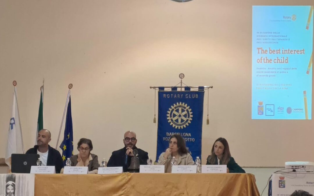 Il Rotary Club Barcellona Pozzo di Gotto, i giovani avvocati dell’Aiga e CAMMINO – Camera Nazionale per le persone, per i minorenni e per le famiglie, incontrano le Scuole per celebrare la i Diritti dell’Infanzia e dell’Adolescenza.