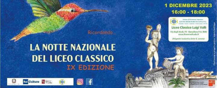 Lo storico “Valli” di Barcellona Pozzo di Gotto aderisce all’iniziativa promossa dal Coordinamento Nazionale “Ricordando la IX edizione della Notte Nazionale del Liceo Classico” che si terrà nell’Aula Magna della sede del Liceo Classico il prossimo venerdì 1 dicembre dalle ore 16.00 alle ore 18.00.