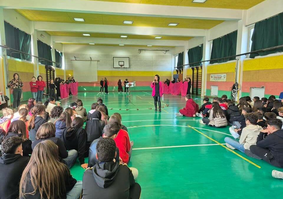 Proposta per classi parallele così favorire l’attenzione e la partecipazione, presso la palestra-auditorium alla presenza attenta della Dirigente prof.ssa Felicia Maria Oliveri, una breve ma simbolica performance coreografica e artistica – diretta dalla prof.ssa Santina Iudicello sulle note de “Il mio canto libero” di Lucio Battisti – ha voluto esprimere il muro di violenza che cinge ancora molte donne nel mondo e il loro difficile percorso verso la libertà, un viaggio poetico che celebra l’amore e la capacità di trovare una dimensione autentica al di fuori delle convenzioni sociali grazie ad un amore puro e rigenerante, agli antipodi di un amore ossessivo, oppressivo, malato.