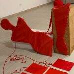 La pioggia ha fatto in parte cambiare location, dirottando le classi prime e seconde nella palestra auditorium dove, dopo avere depositato tanti oggetti rossi su parti di tappeto collocate nei corridoi del primo piano – a rappresentare appunto gli oggetti delle donne vittime di violenza sparsi sul loro sangue, versato da chi il più delle volte diceva di amarle e invece ha spezzato il filo che le teneva in vita – gli alunni hanno assistito alla performance e riflettuto sul grave fenomeno.