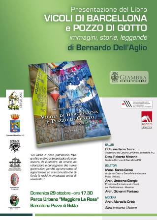Si terrà domenica prossima, 29 ottobre 2017, alle ore 17,30, presso l’Auditorium del Parco Urbano “Maggiore La Rosa” di Barcellona Pozzo di Gotto, la presentazione del libro “Vicoli di Barcellona e Pozzo di Gotto” di Bernardo Dell’Aglio, pubblicato da Giambra Editori.