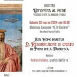 Sabato 30 marzo alle ore 18.00 presso la Biblioteca Comunale “Nannino Di Giovanni” di Barcellona Pozzo di Gotto continua la rassegna “Un’opera al mese e nel percorso d’arte tra immagini e parole è in programma un incontro curato dallo storico dell’arte Andrea Italiano: “Etsi Homo daretur. La Resurrezione di Cristo di Piero della Francesca”.