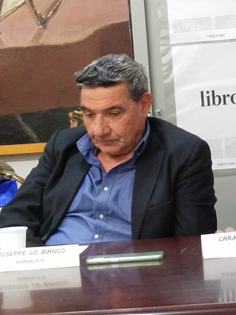 Terzo relatore a prendere la parola è stato il giornalista Peppino Lo Bianco, introdotto da Michela Di Dio: “Quando si parla del tema della giustizia non possiamo non pensare alle tante inchieste di questo grande giornalista che è Peppino Lo Bianco e sua è la prefazione al testo di Sara Favarò, nella quale è presente probabilmente la definizione più calzante di questo testo: un risarcimento!”. Lo Bianco ha lodato e ringraziato Sonny Foschino per la sua interpretazione di “Vitti ‘na Crozza”, che ha restituito alla canzone la vera anima, pregna di dolore e morte. È seguito un altro contributo artistico con l’esecuzione al clarinetto della colonna sonora di Nuovo Cinema Paradiso da parte del delicato musicista Vincent Dominique Trifirò.