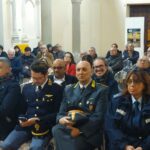 Al tavolo dei relatori anche il Dott. Antonio Molinaro, Primo Dirigente della Polizia di Stato, Reparto Volo, con il suo vice seduto in prima fila. Una menzione speciale per l’artista Gaetano Porcasi, “Pittore della Storia”, che si è brevemente collegato telefonicamente e del quale meravigliose ed incisive opere erano presenti in Auditorium.