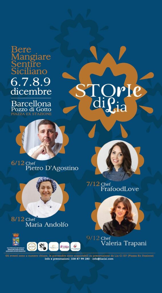 In arrivo nella città del Longano il primo di una lunga serie di eventi mondani che sul territorio e sul Made in Sicily struttura la sua identità. Grazie al patrocinio dell’Assessorato alle Attività produttive del Comune di Barcellona Pozzo di Gotto che ha messo a disposizione la splendida cornice dello spazio espositivo che un tempo ospitava la vecchia stazione ferroviaria, la Okto Promotion di Annamaria Imondi è felice di presentare “Storie di Lia”, un evento che parla di Sicilia da Bere, da Mangiare, da Vivere
