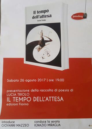 Verrà presentato sabato 26 agosto 2017 alle ore 19,00 presso la Libreria Gutenberg di Barcellona Pozzo di Gotto la raccolta di poesie di Lucia Triolo “Il Tempo dell’attesa ” (Edizioni Fiorino).