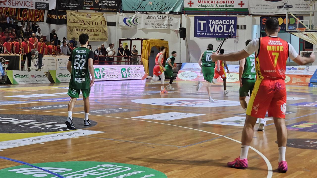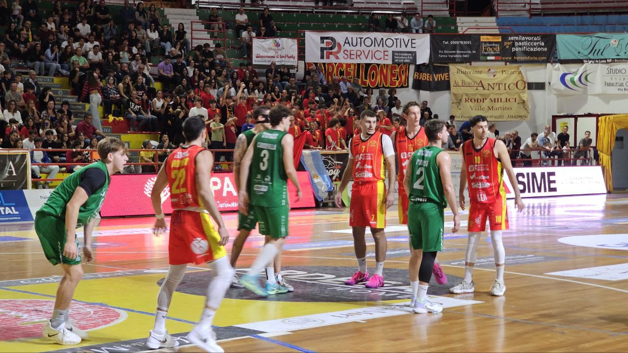 Nel secondo parziale accade l’incredibile. I giallorossi si bloccano in attacco, mentre Corato trova continuità e fiducia, spinta da triple pesanti firmate Manisi, Basile e Paoletti, quest’ultimo autore anche di un gioco da quattro punti. Gli ospiti volano sul 30-40, ma tre triple consecutive di Sebastianelli riaccendono le speranze del PalAlberti e riportano Barcellona sul 39-40. Coach Gattone chiama time-out e, al rientro in campo, è ancora Corato a dettare il ritmo, chiudendo all’intervallo lungo sul 44-54.