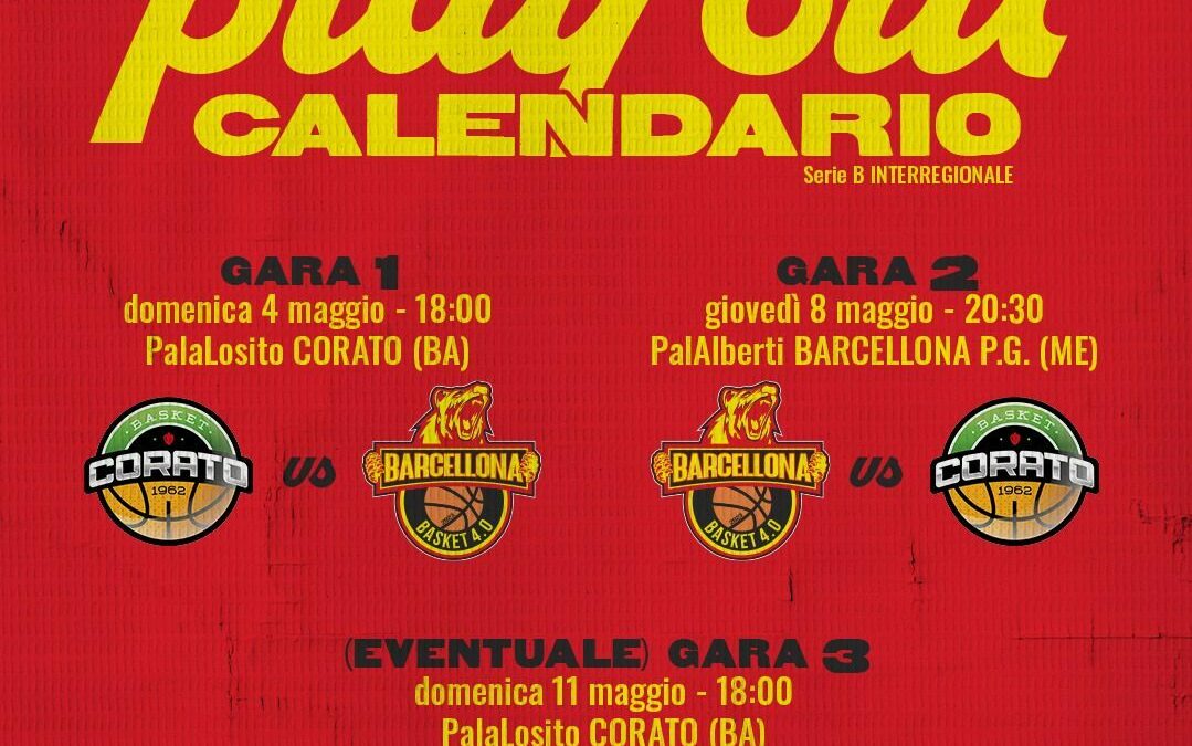 La società NextCasa Barcellona Basket 4.0 si prepara alla terza e ultima fase del campionato di Serie B Interregionale. Nel primo turno dei play-out il roster giallorosso affronterà il Basket Corato, che potrà contare sul vantaggio del fattore campo nell’eventuale bella. Si comincia domenica 4 maggio in terra pugliese con gara 1, giovedì 8 maggio è in programma gara 2 al PalAlberti e domenica 11 maggio eventuale gara 3 in casa di Corato.