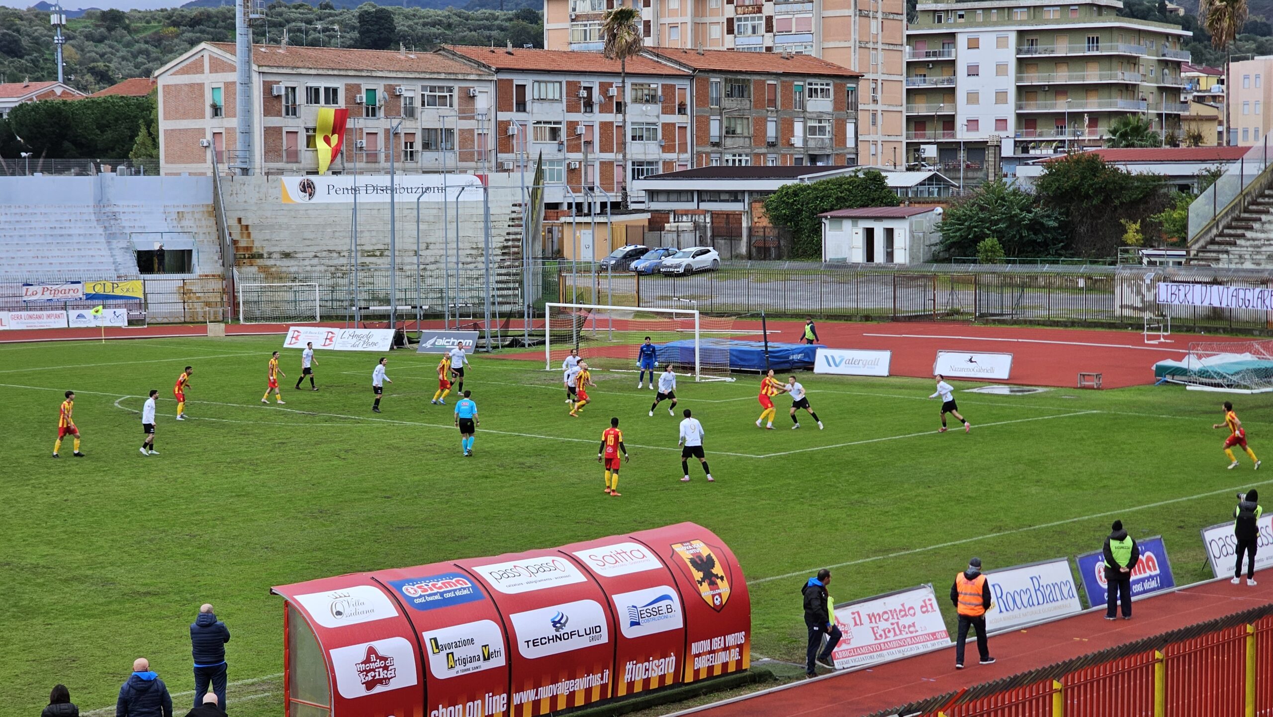 Andando al match, la Nuova Igea Virtus priva dell’attaccante Samake, dopo una prima fase di possesso palla igeano, al 15′ sono gli ospiti a farsi pericolosi con la bordata da fuori di Schiavi con la palla che termina alta sulla traversa.