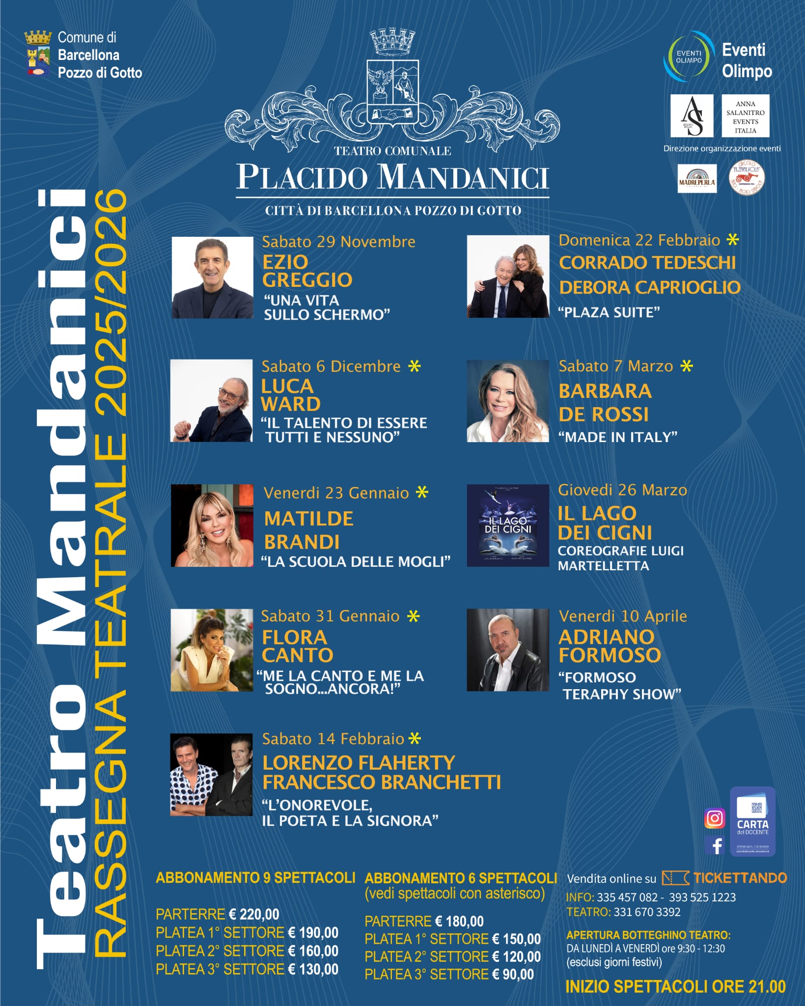 Anche la stagione teatrale 2025/2026 del Teatro Mandanici di Barcellona Pozzo di Gotto (ME) si preannuncia ricca di emozioni, qualità e nomi d’eccellenza.