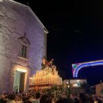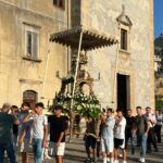 Finalmente il giorno di “Mezzagustu” sorge con un sole splendente. Dopo una mattinata trascorsa fra le Sante celebrazioni e performance della Banda musicale locale alle 20.45 in punto si assiste finalmente all’accensione della prima candela delle numerose che adornano riccamente la Vara dell’Assunta. Momento estremamente solenne e commovente quando i portatori si inginocchiano ai piedi della Santa Vergine col capo chino e ricevono la benedizione solenne, e si intona il canto che finisce con l’esclamazione “Evviva l’Assunta”. Immediatamente i portatori balzano in piedi e a spalla innalzano all’unisono la pesante vara al grido di “Evviva”. Questa come se fosse leggera come l’aria comincia a ondeggiare a ritmo scandito dagli “Evviva”. La folla numerosa finalmente intravede i portatori che con uno sforzo potente e manovre ben calcolate fanno scivolare con leggiadria la Vara, non perdendo il ritmo, dal grande dislivello che la separa dalla piazza, dove ad attenderla c’è la Banda e una folla di fedeli a fare da tappeto. Mentre le campane suonano senza sosta, ecco che l’Assunta inizia il suo viaggio che la porterà all’Abbazia, dove sosterà e da cui poi tornerà al Duomo.