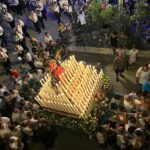 Caratteristica di questa bellissima processione è il fatto che i fedeli non danno mai le spalle alla Vergine, camminando all’indietro lentamente a passo di musica. L’Assunta a questo punto continua il suo cammino verso gli stretti vicoli del borgo dove è uno spettacolo vedere la Vara che a malapena passa fra gli stretti balconi, e i bravissimi ed esperti portatori sono in grado di superare delle curve molto strette. “Aria-aria-aria”, gridano, per avere il cammino libero nei punti più critici e i fedeli si affrettano a liberare il percorso.