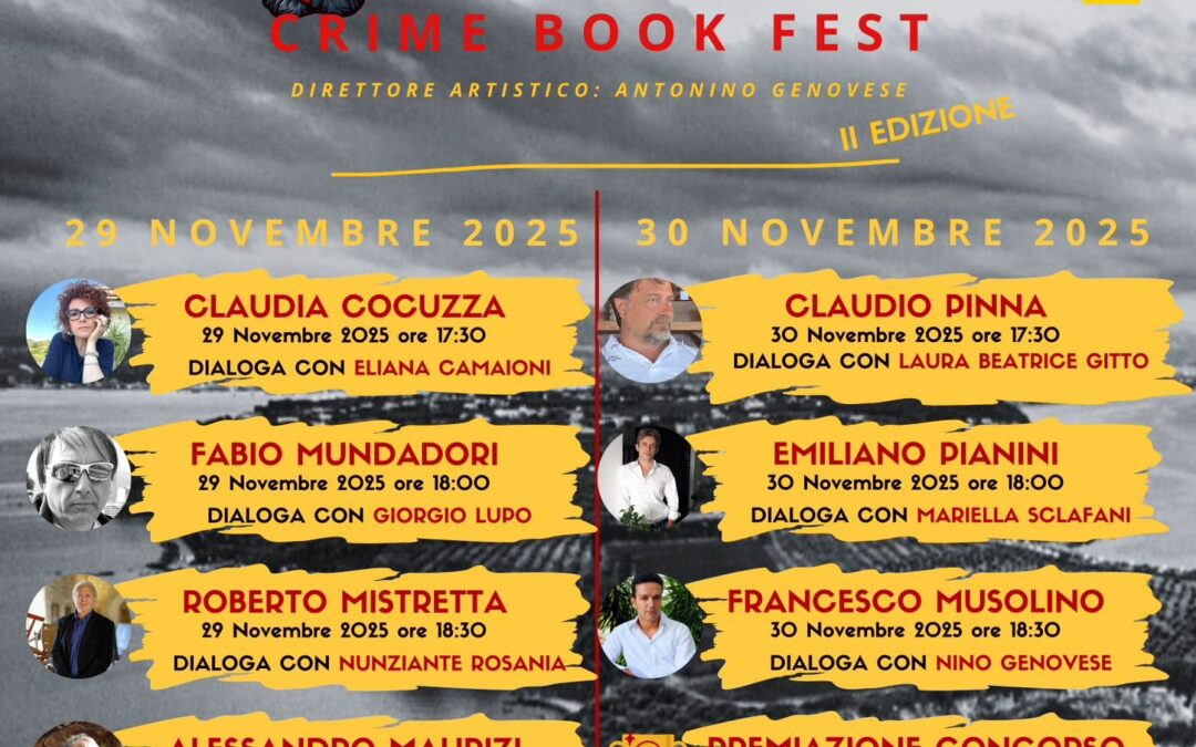 Il fascino del mistero e della letteratura noir torna protagonista a Milazzo con la seconda edizione del Milazzo Crime Book Fest, il festival dedicato al giallo, al crime e al thriller contemporaneo, in programma sabato 29 e domenica 30 novembre 2025 presso Palazzo D’Amico.