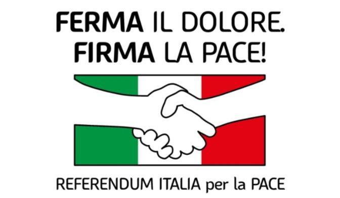 Tre firme contro la guerra e la tutela della sanità pubblica ”FERMA IL DOLORE FIRMA LA PACE” il motto della campagna referendaria.