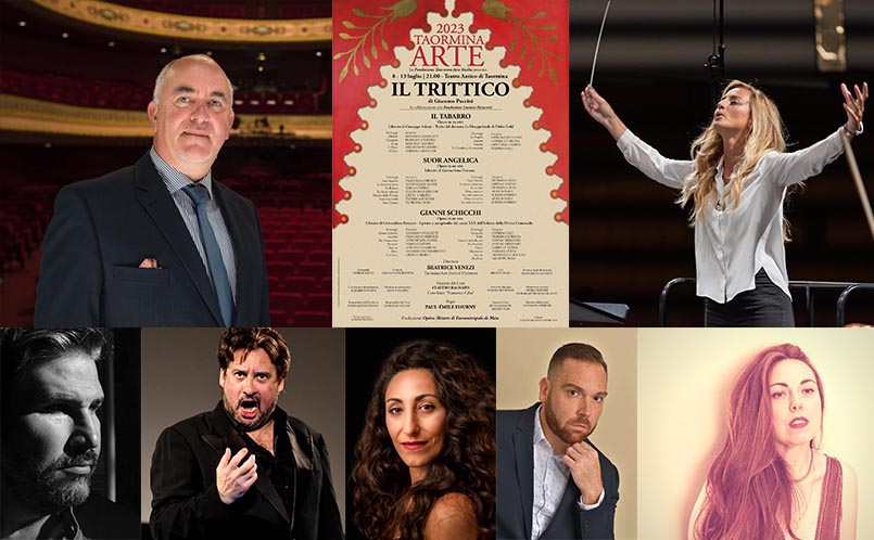 Il festival Internazionale di musica, prosa e danza Taormina Arte inizia sabato 8 luglio con il Trittico Pucciniano, una co-produzione Taormina Arte e Opéra-théâtre de Metz, in collaborazione con la Fondazione Luciano Pavarotti. L’opera debutterà in prima italiana sul palco del Teatro Antico di Taormina (replica il 13 luglio) con la Taormina Arte Festival Orchestra diretta dal M.o Beatrice Venezi e il coro lirico “Francesco Cilea” diretto dal M.° Claudio Bagnato. Nel cast grandi stelle della lirica quali Marcelo Àlvarez, Massimo Cavalletti, Marco Ciaponi, Francesca Tiburzi e Annunziata Vestri che si esibiranno insieme a giovani talenti selezionati dalla Fondazione Pavarotti.