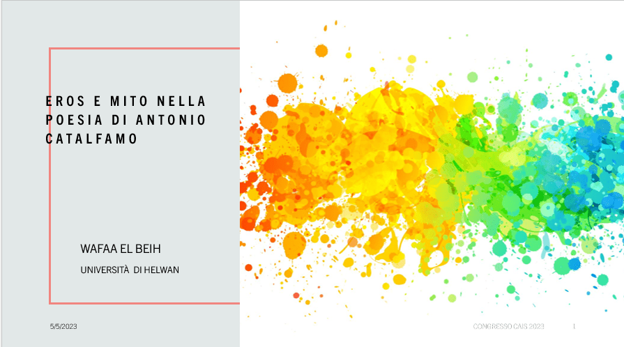 Gli antenati di Antonio Catalfamo sono stati, dunque, pastori d’origine greca, dediti all’allevamento del bestiame e alla tintura delle pelli. Tutto ciò emerge dall’ultima raccolta poetica di Antonio Catalfamo, “La rivolta dei demoni ballerini”, che Wafaa Raouf El Beih ha analizzato dettagliatamente nel suo denso intervento. La relatrice ha evidenziato, inoltre, la componente “averroista” della poesia di Catalfamo, ereditata dalla Scuola poetica siciliana di Federico II di Svevia, nonché dal trattato “De Amore” di Andrea Cappellano e dalla poesia “Donna me prega” di Guido Cavalcanti.