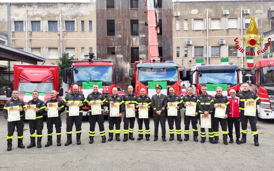 Dopo questa bellissima scenografia, la celebrazione di Santa Barbara è proseguita all’interno della Caserma Bevacqua dove il Comandante ha fatto un importante discorso e, successivamente, sono stati consegnati premi ai campioni sportivi messinesi che prestano servizio nel Corpo VF, sono state consegnate le croci di anzianità e attestati di lodevole servizio ai vigili del fuoco che hanno raggiunto il quindicesimo anno di appartenenza, sono stati consegnati attestati di benemerenza anche al personale in quiescenza e alle famiglie dei Vigili del fuoco che non sono più tra noi. Al termine della mattinata tutti i presenti hanno potuto gustare le tante prelibatezze culinarie grazie alla collaborazione dei tanti volontari provenienti dall’istituto alberghiero “Antonello” di Messina.