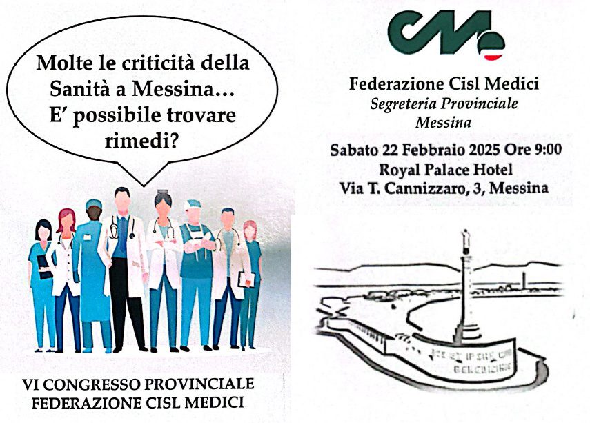 Si terrà sabato 22 febbraio, con inizio alle 9.30, presso l’hotel Royal di Messina in via Tommaso Cannizzaro, il VI congresso provinciale della Cisl Medici di Messina.