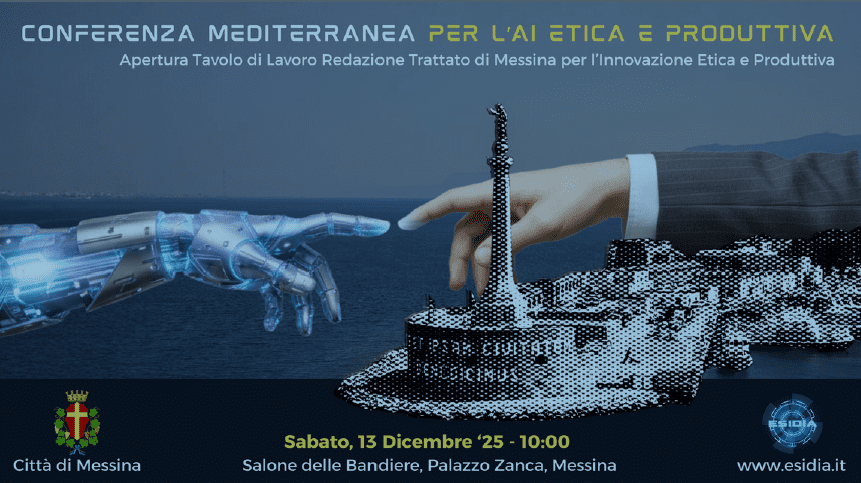 Sabato 13 dicembre prossimo, alle ore 10, Messina ospiterà la Conferenza Mediterranea sull’Intelligenza Artificiale, un evento promosso da ESIDIA Ente Siciliano per l’innovazione Digitale e l’intelligenza Artificiale che avrà luogo nel prestigioso Salone delle Bandiere a Palazzo Zanca e riunirà relatori d’eccezione provenienti dal mondo accademico, istituzionale, scientifico e imprenditoriale al fine di affrontare con visione e responsabilità i principali temi che stanno trasformando il nostro presente e il nostro futura: etica e governance dell’Al, impatto sulle imprese e sulla produttività, innovazione sostenibile, formazione e competenze digitali, prospettive euro-mediterranee dell’innovazione.