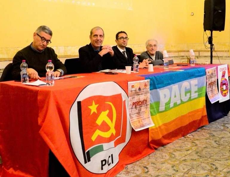 Dopo, sotto la sapiente conduzione di Marco Filiti Segretario regionale di PCI, ha esordito Il Prof. Federico Martino, docente di Storia del diritto italiano, che con una lucidissima analisi storica e partendo dalla conclusione del pensiero marxiano ha definito la guerra Russia – Ucraina nient’altro che una guerra fra simili, cioè la guerra fra due capitalismi, quello Russo e quello occidentale, diversi ma simili, che è connaturata nell’ideologia capitalista di oppressione e prevaricazione. Altrettanto lucida e chiara è stata la sua analisi su quanto sta succedendo in Medio Oriente , una situazione storicamente nata male da decisioni degli organismi internazionali sbilanciate verso una parte, Israele, a scapito dell’altra la Palestina. Ha colpito poi per la passione e per l’accorato racconto l’intervento di Enzo Infantino dell’associazione “Per non dimenticare Sabra & Shatila”, che ha portato la sua testimonianza diretta della Striscia di Gaza e di tutta quella zona martoriata. Enzo Infantino è uno che ha visto e che vede quel dramma, che ha abbracciato e abbraccia uomini, donne, bambini senza futuro.