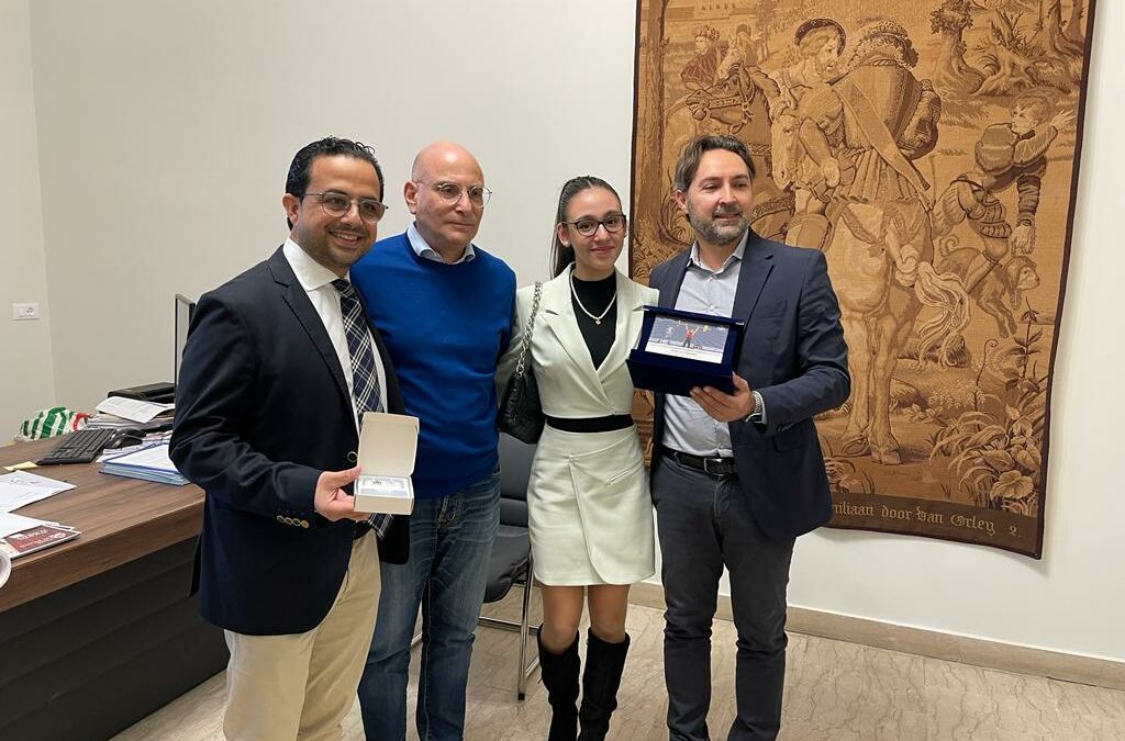 Nel corso di una cerimonia tenutasi a palazzo dell’Aquila, l’assessore allo Sport, Antonio Nicosia, assieme al collega alla Polizia locale, Francesco Coppolino e al presidente del consiglio comunale, Alessandro Oliva, ha premiato la giovane atleta della società “Pesistica Milazzo”, Ginevra Lazzaro che nel corso di questo 2023 ha conquistato due titoli italiani nelle categorie under 17 e under 15 anni.