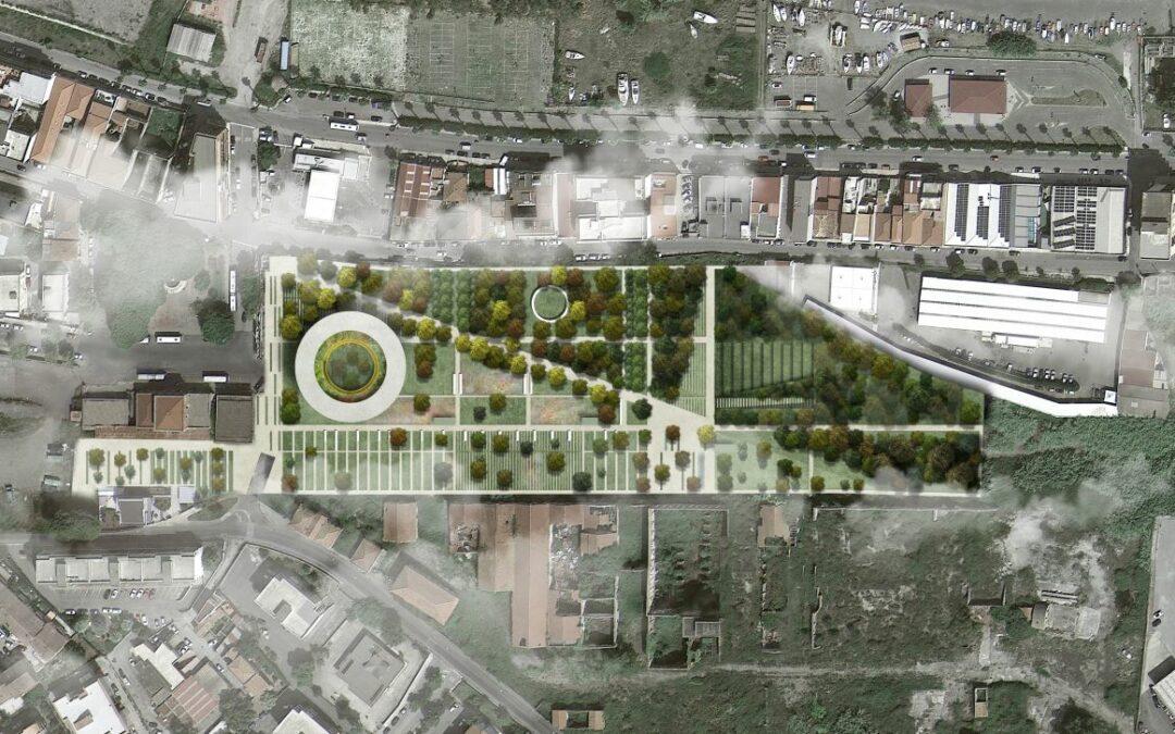 Da una parte la macroarea arborea, dedicata proprio al verde e alla piantumazione di essenze autoctone, l’altra, più inclinata sfrutta tale pendenza per ospitare la collocazione di un’area per spettacoli, rappresentazioni e concerti, oltre ad una zona benessere e un altro spazio per l’allestimento occasionale di fiere o mercati specialistici (antiquariato, artigianato, floreale, ortofrutticolo) e in buona sostanza libera per gli usi necessari alla comunità.