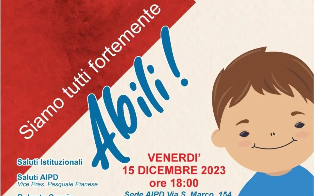 “Siamo tutti fortemente abili“, questo il titolo del convegno organizzato dalla sezione dell’Aipd Onlus Milazzo e Messina (Associazione Italiana Persone Down) che si svolgerà venerdì 15 dicembre, alle 18, nel salone del Centro Sociale in via San Marco 154 a Milazzo.