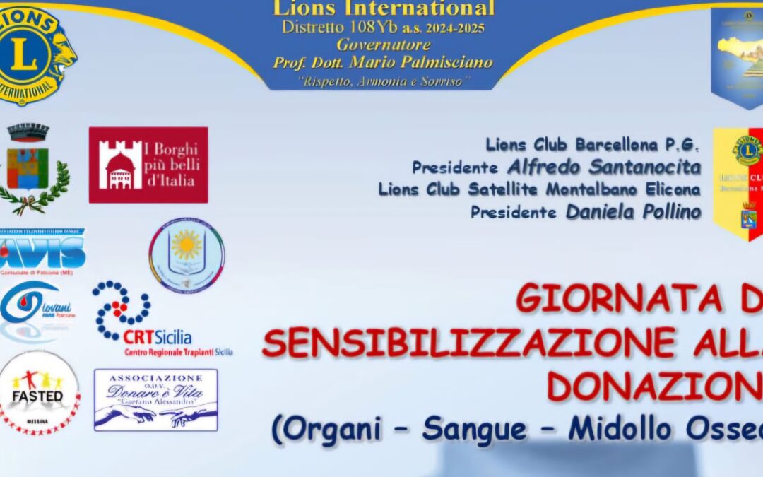 Una giornata di sensibilizzazione sul tema della Donazione (Organi, Sangue, Midollo Osseo), organizzata dal Lions Club Barcellona Pozzo di Gotto presieduto dall’Avv. Alfredo Santanocita, si terrà Domenica 2 febbraio 2025 a partire dalle ore 9.30 nel bellissimo scenario del Castello di Montalbano Elicona.