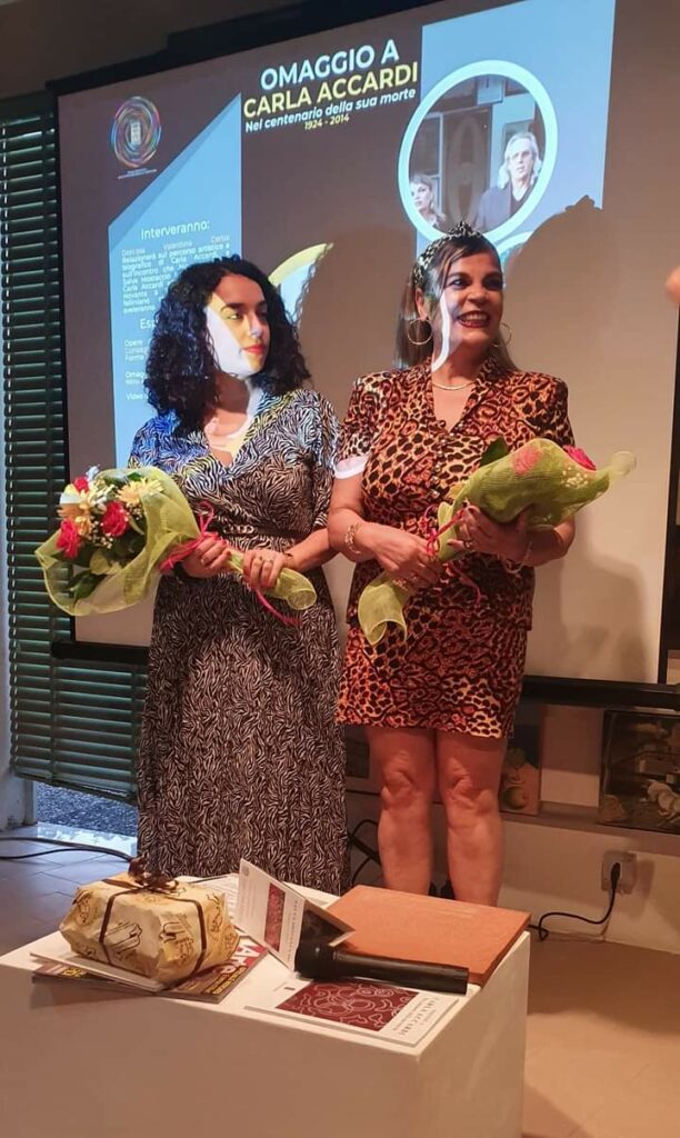 Aneddoti anche divertenti che alla fine hanno portato alla realizzazione da parte della Accardi di una mattonella che fa parte della collezione del Museo Epicentro e che è stata ammirata dai tantissimi presenti all’evento insieme ad altre opere realizzate proprio in onore della stessa da Salva e Nino, lavori che sono stati illustrati dalla Certo.
