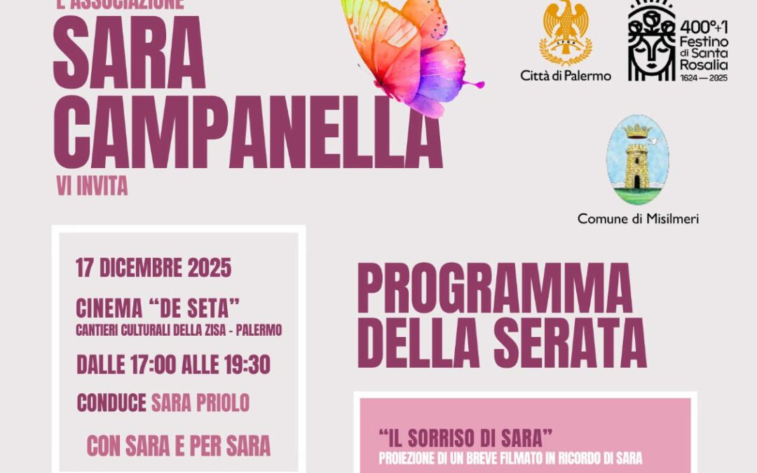 Oggi alle ore 17, presso il Cinema De Seta ai Cantieri Culturali alla Zisa di Palermo, di terrà il primo evento pubblico dell’Associazione “Sara Campanella ETS”, costituita con l’obiettivo di custodire la memoria di Sara Campanella e di tradurla in un impegno concreto volto alla promozione della consapevolezza, della responsabilità civile e del contrasto a ogni forma di violenza e indifferenza.