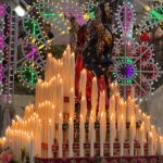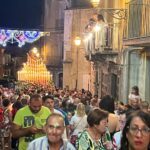 Il “Menzagustu” a Novara di Sicilia si è aperto con i “botti”, la Banda Musicale “G. Caruso” ha fatto il proprio giro per le vie del borgo mentre alle 11.30 in Duomo si è tenuta la Santa Messa Solenne alla presenza delle Autorità civili e militari. La grande processione dell’Assunta è iniziata alle 21.00 in punto subito dopo l’accensione degli oltre 160 ceri posti sull’artistica vara ed il canto dell’Ave Maris Stella da parte dei portatori inginocchiati ai Suoi piedi, con la Madonna che indossava già da qualche giorno tanti gioielli ex voto dei fedeli: una cintura d’oro massiccio, un cuore di grandezza naturale (in oro) con diamanti e il prezioso stellario con 12 delicate auree rose, sormontato da un fregio “a frasca”.