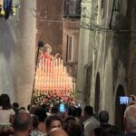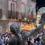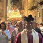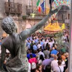 L’ultimo tratto della processione dalla Piazza Bertolami al Duomo è sempre il più sentito. Anche quest’anno… la Madonna portata a spalla dai portatori ormai stanchi dalle ore di processione fra gli Evviva e… tre passi avanti e due indietro. Novara è lì, tutta lì, non dietro la vara ma davanti… cammina all’indietro guardando Lei. Alcuni l’aspettano in chiesa ma non sanno cosa si perdono: il novarese “ca scorcia” ha bisogno di essere con la propria Mamma proprio in quei suoi ultimi passi nel borgo. Un’ora esatta per un percorso relativamente breve fra la piazza Bertolami ed il Duomo, un’ora che nonostante la stanchezza si vorrebbe non finisse mai… Poi ecco i botti, il rientro, i tre colpi di martello sul bracciolo, l’Assunta posata fra gli applausi dei fedeli che sono accorsi ai piedi di Lei a prendere un po’ di cera da portare a casa. Come sempre… l’hanno giardata in viso, hanno salutato e la malinconia ha fatto per un attimo capolino, lasciando poi il posto alla speranza di un anno migliore, un anno partito il 16 agosto e che finirà il prossimo “Menzagustu” quello del 2025, quando si potrà rivedere nuovamente la Madonna Assunta in giro per Novara di Sicilia, questa volta accompagnata (accade ogni 5 anni) da 14 statue di Santi a farLe da “Corona”, sarà l’Apoteosi dell’Assunta, nuovamente istituita in occasione del Giubileo del 2000 dall’allora Arcivescovo Mons. Giovanni Marra e che è stata riproposta nel 2005, nel 2010 e nel 2015 (saltata nel 2020 causa Covid).