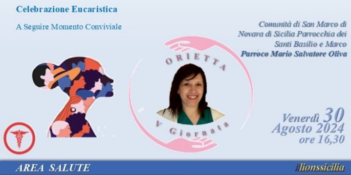 Venerdì 30 agosto 2024 alle ore 16.30 nella frazione San Marco del comune di Novara di Sicilia, si terrà la V Giornata dedicata ad Orietta Puglisi, organizzata dal Lions Club Barcellona P.G. e dal Club Satellite Novara di Sicilia.