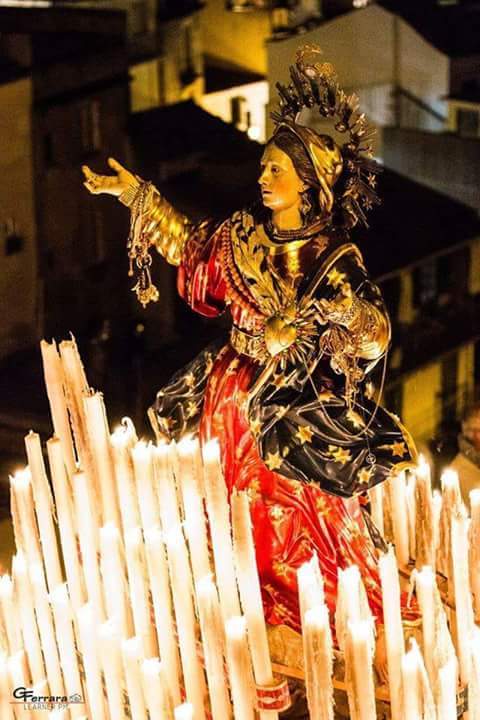 Il 15 agosto a Novara di Sicilia è da sempre il giorno più importante dell’anno, quello tanto atteso, da alcuni addirittura sognato: la Madonna Assunta in Duomo appare in tutto il suo splendore già dal mattino e poi all’imbrunire, quando è pronta per la Solenne Processione, con i suoi 150 ceri accesi, l’addobbo floreale alla Vara, i tantissimi gioielli che sono gli “ex voto” dei fedeli. Quest’anno il Pontificale delle 11,00 verrà officiato da S.E. il Vescovo Ausiliare Mons. Cesare Di Pietro, originario proprio di Novara. Le 21,00 è l’orario cruciale: il commovente canto dell’Ave Maris Stella intonato dai portatori, quindi la Vara viene issata dopo tre colpi di martello sul bracciolo. “È come Madre Celeste”, “evvivaaaa”… è come Regina degli Angeli”, “evvivaaaa”… È per la Protettrice di Novara”, “evvivaaaaa”. Sono momenti palpitanti questi, i novaresi piangono di commozione, chi si inginocchia, chi prega, chi si gode qualcosa di unico. L’Assunta ora è sulla porta, vengono sparati i botti, la banda suona e così ha inizio la maestosa processione che il Pitrè definì “fra le più pompose del mondo, molto spagnola”. Immancabili tappe l’Abbazia (arrivo alle 22,00) e dopo una sosta l’Assunta giungerà a mezzanotte in punto in Piazza Bertolami, il centro del borgo. In entrambe le soste verranno eseguite le Litanie. Intorno all’1,00 lo spettacolo pirotecnico e quindi il rientro in Chiesa Madre attraverso la via Duomo: più di un’ora di tempo per percorrere un tragitto relativamente breve perché i portatori avranno la caratteristica andatura oscillatoria, “A ballada da Madonna”, con tre passi avanti e due indietro, qualcosa che non è mero folklore ma una metafora della vita: pur essendoci problemi ed ostacoli bisogna sempre andare avanti. La Processione rientra in Duomo poco dopo le 2,00 in un unico grido “Evviva Maria” i tre colpi di martello sul bracciolo della vara, l’applauso finale, lacrime e speranze di un popolo. Arrivederci al prossimo “Menzagustu” in grazia di Dio.