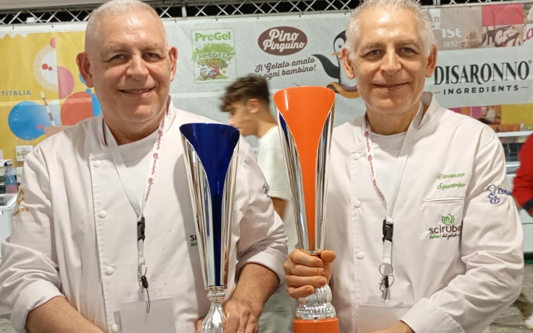 I gemelli maestri gelatieri di Oliveri che hanno conquistato lo scorso marzo l’intero Vaticano, facendo apprezzare la loro specialità “Hallelujah” come “Gusto dell’Anno 2025” per la Giornata Europea del Gelato, hanno portato a casa un’altra affermazione professionale con lo stesso gusto e non solo: doppio podio per due gemelli Alessandro e Vincenzo Squatrito, 53enni, proprietari di un Bar Gelateria ad Oliveri – ME (Ritrovo Orchidea), hanno stravinto alla Quarta Edizione del “Festival del Gelato Artigianale Scirubetta 2025”, che si è svolto dal 13 al 16 settembre a Reggio Calabria, in due Categorie diverse e prestigiose anche per il consenso della gente e dei consumatori. Il maestro gelatiere Alessandro trionfa nella Giuria Tecnica con il Gusto Hallelujah (una sorta di gianduia con nocciole tostate e una variegatura di cioccolato puro) e il maestro gelatiere Vincenzo la spunta con successo nella Giuria Popolare con la varietà Nocciolissimo. Entrambi sono dunque Ambasciatori del Gelato e della Granita, tant’è che tre anni fa hanno costituito la Prima Scuola al Mondo di Granita Siciliana, pensando di interpretare le tradizioni e utilizzando gli ingredienti siciliani – sinonimo di eccellenza. I due “artisti dolciari” si accreditano da anni con la Guida Gambero Rosso e gli Oscar del Gelato e della Granita; hanno persino realizzato il primo gusto di gelato per i quattrozampe, per chi volesse consumare il proprio dessert in compagnia del proprio cane. Ma sicuramente ottengono il loro apice in questo momento storico, ideando quel Gusto che celebra il Giubileo 2025, che è stato ufficializzato all’evento “SIGEP World” a Rimini, con una selezione rigorosa su oltre trenta maestri gelatieri in Europa, fino a diventare protagonista per la “Giornata Europea del Gelato” ed essere distribuito a Roma e in tutto il Continente.