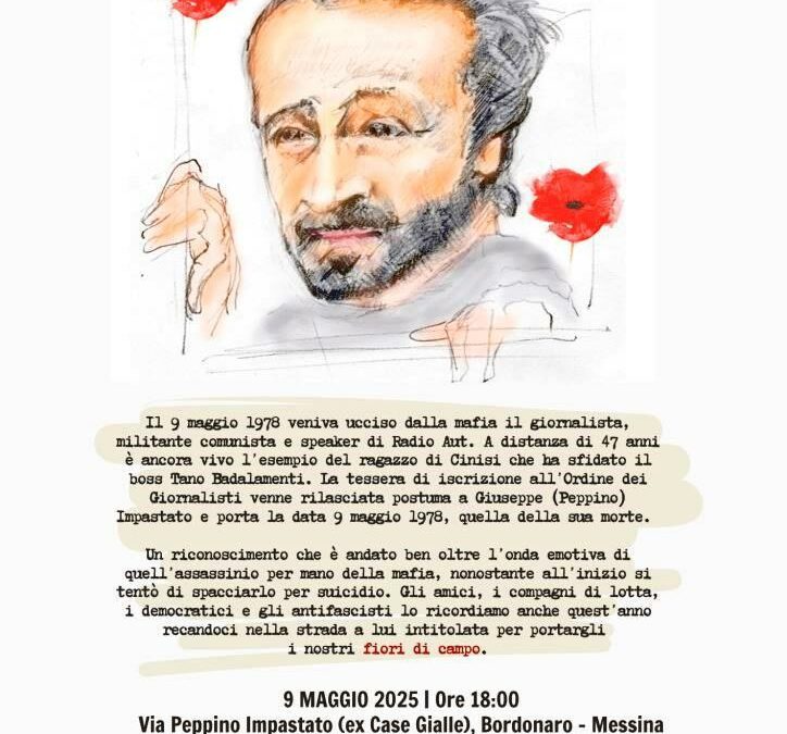 L’appuntamento è alle ore 18 del 9 maggio 2025 in via Peppino Impastato (Case gialle, Bordonaro – Messina).