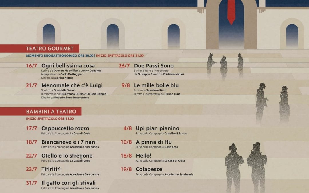 Sono 4 in totale gli spettacoli che fanno parte del teatro gourmet e che saranno preceduti da una degustazione enogastronomica curata dallo chef Christian Mobilia.