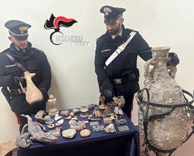 Nel pomeriggio di ieri 20 febbraio 2024, i militari dell’Arma sono intervenuti presso l’abitazione del giovane per eseguire una perquisizione. Una volta all’interno del domicilio, i Carabinieri hanno scoperto e sequestrato 55 reperti archeologici consistenti in anfore, lucerne, oltre ad una vasta varietà di monili, verosimilmente risalenti al 400 A.C.. di cui lo stesso non sapeva fornire alcuna giustificazione sulla loro provenienza. Inoltre, sono stati altresì trovati e sequestrati un alligatore mummificato di oltre un metro e una modica quantità di marijuana, motivo per il quale l’indagato è stato anche segnalato alla Prefettura di Messina, quale assuntore di droghe.