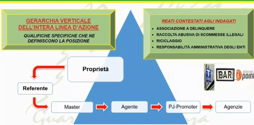 Di fatto, l’organizzazione aveva assunto i connotati di una stabile impresa occulta, all’interno della quale i soggetti, ad ogni livello della struttura organizzativa, risultavano coinvolti nel rischio d’impresa attraverso la gestione sul valore delle giocate raccolte dalle compiacenti reti commerciali, per la successiva proporzionale suddivisione degli utili e delle eventuali perdite, il tutto in violazione delle norme fiscali, dei presidi antiriciclaggio e in totale inosservanza delle disposizioni in materia gioco.