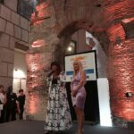 Ospite d’onore Mita Medici, attrice di Teatro e Cinema nonché pittrice, che per l’occasione ha indossato un outfit di “Mimi et Mamà” di Alta Sartoria, giacca con gonna ampia svolazzante colore bianco, con stampa di stelle rose dei venti, in bianco e nero. Per la sua professionalità nell’ambito di Arte e Cultura, le sarà conferito il Premio per la Cultura alla Protomoteca del Campidoglio. Un altro momento molto bello è stato quello della danza curato dalla bravissima ballerina Silvia Layla.